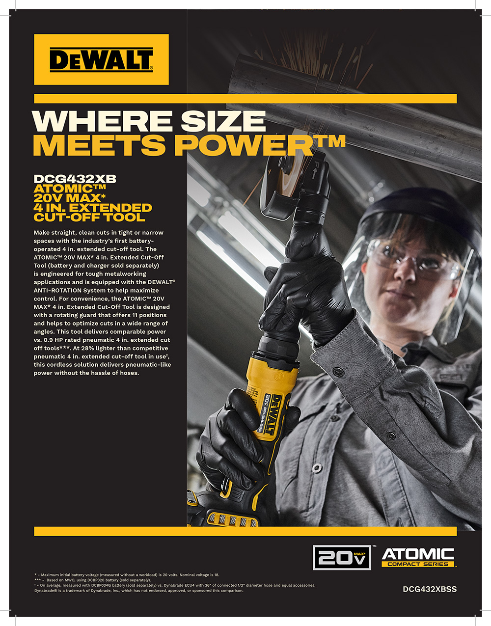 DEWALT has announced three innovative additions to its ATOMIC™ 20V MAX* lineup: the 4 In. Cut-Off Tool (DCG432XB), the 3 In. Cut-Off Tool (DCG430B), and the Extended Die Grinder (DCG420XB). These new tools are engineered for tough metalworking applications in narrow or confined workspaces while delivering optimal performance, versatility, and user safety.