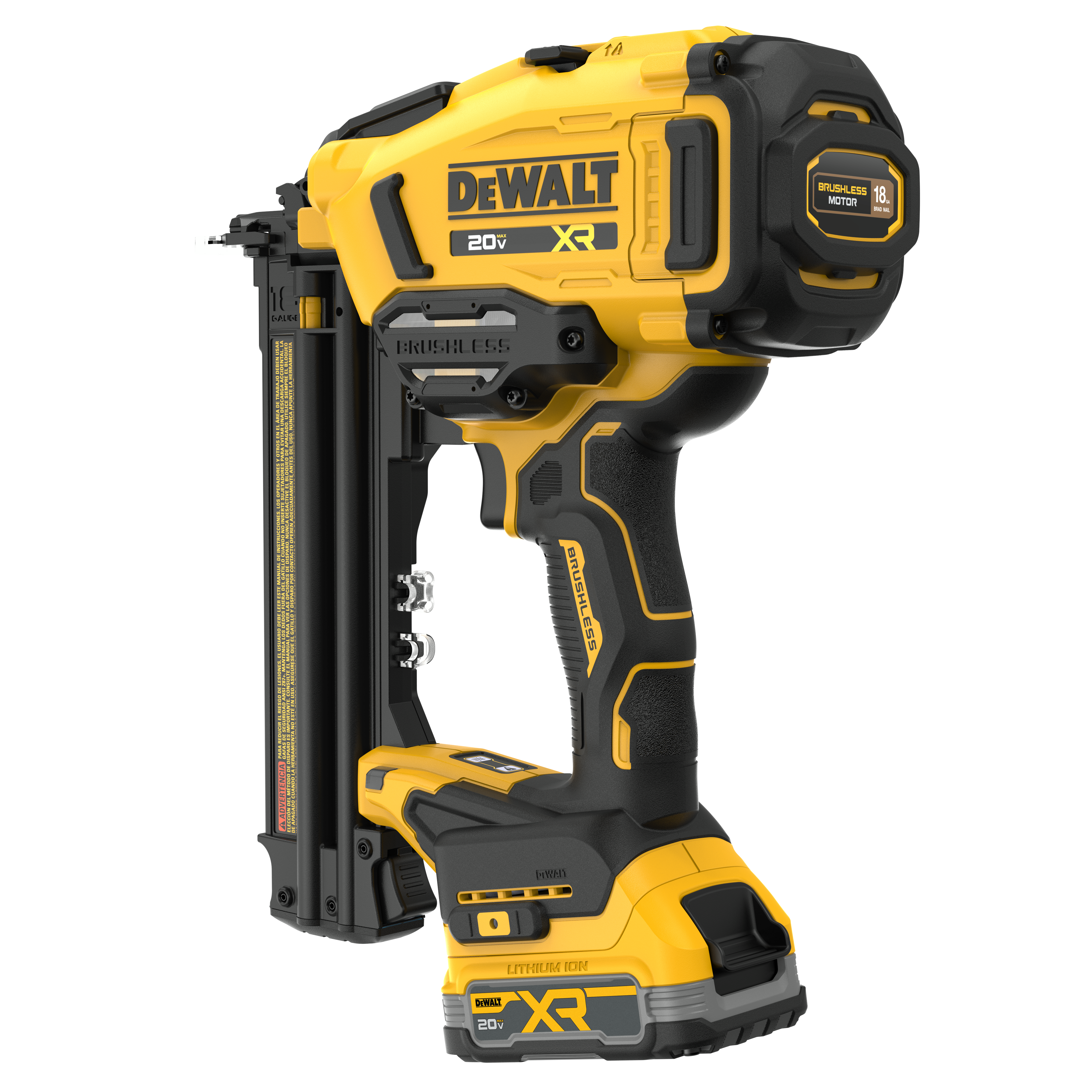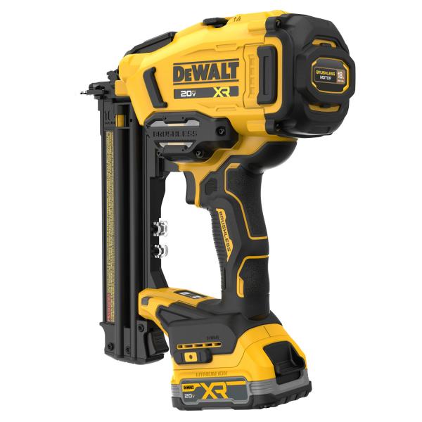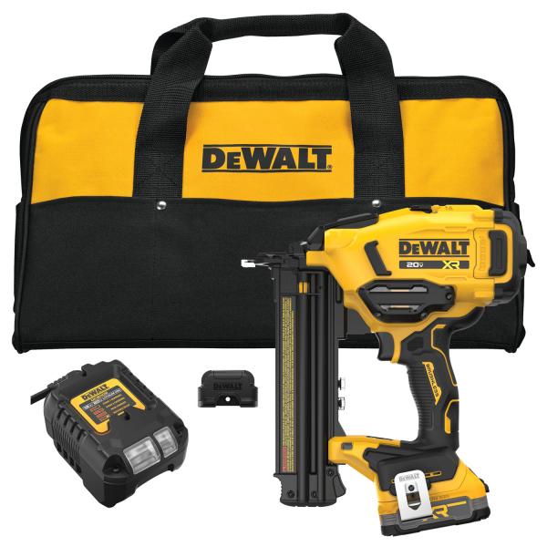 The 20V MAX XR® Cordless 18GA Brad Nailer is available as a kit (DCN210E1) or bare tool (DCN210B) where DEWALT products are sold.